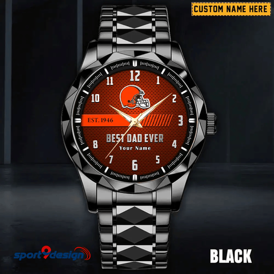 Cleveland Browns Best Dad Ever Luxury Diamond Men Watch Father's Day Gift